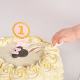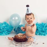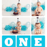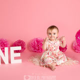 This session starts off like the traditional birthday shoot and then at the end we set up a special cake smash backdrop and let your little one loose on the cake!